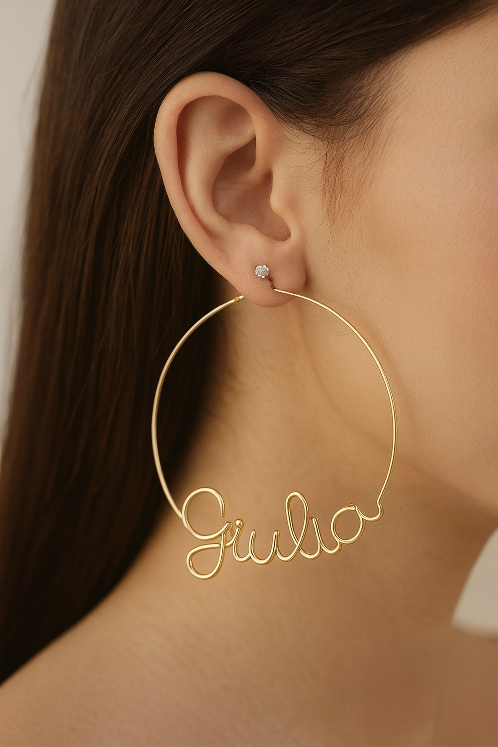Orecchini personalizzati in argento 925 Realizzati artigianalmente in Italia, questi orecchini in filo d’argento 925 sono un gioiello unico e simbolico. Perfetti da regalare a figlia, sorella o amica, possono essere personalizzati con un nome o una parola (max 10 lettere).