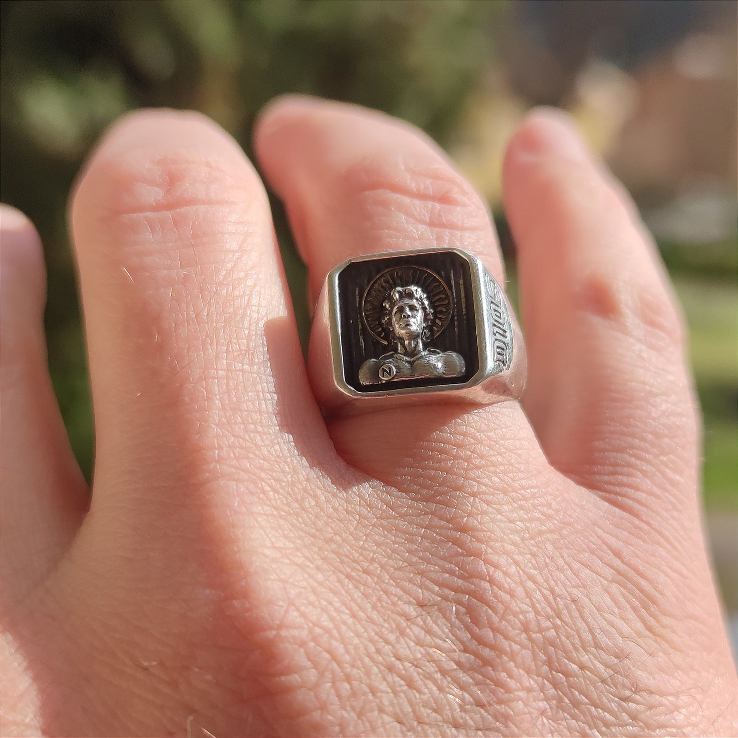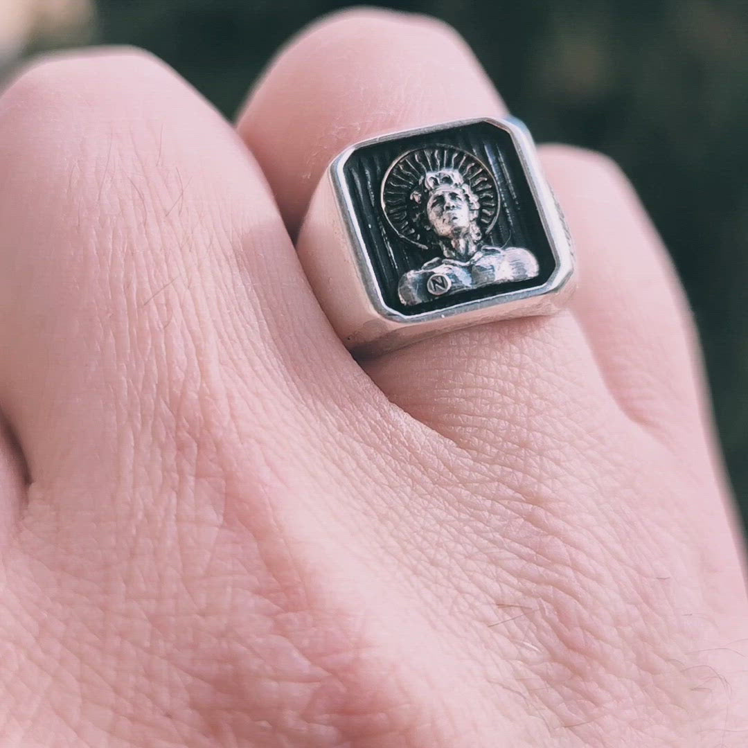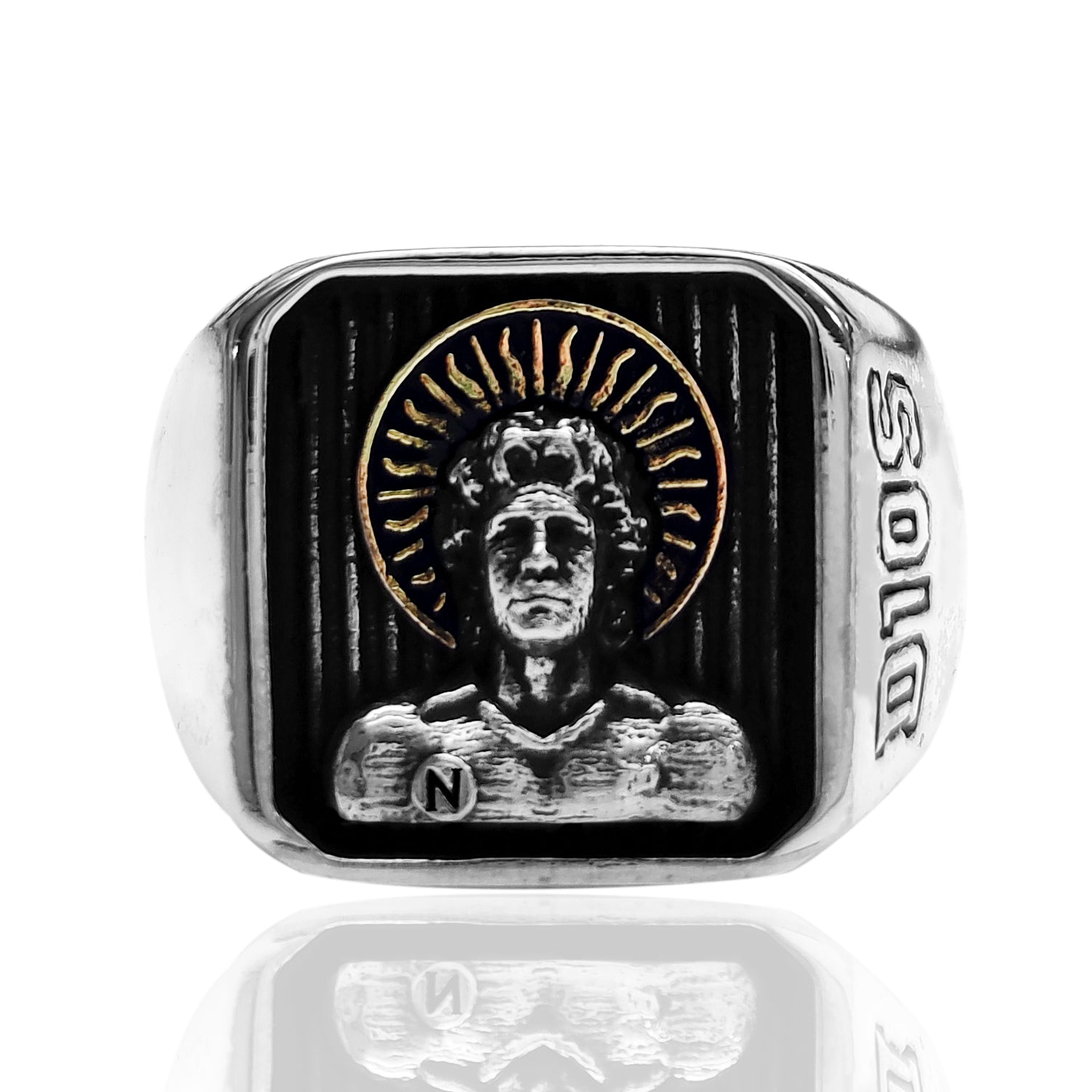Rendi omaggio a una leggenda del calcio con l’anello Maradona D10S, realizzato in pregiato argento 925 e lavorato a mano dai migliori maestri orafi italiani. Questo gioiello unico rappresenta il calciatore napoletano in un suggestivo mezzobusto con un’aureola che richiama il sole della bandiera argentina, simbolo della sua grandezza e carisma.