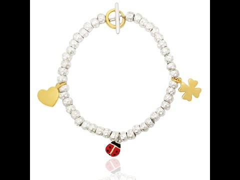 Elegante bracciale rolò artigianale in argento 925 sterling, anallergico e 100 % Made in Italy, impreziosito da granelli martellati e fino a 5 delicati ciondoli charms pendenti a tua scelta: cuore, stella, coccinella, angelo, farfalla, quadrifoglio e altri. Realizzato su misura in 3–4 giorni, viene confezionato in una raffinata scatola regalo con panno per la pulizia. Ideale per chi cerca un gioiello personalizzato, curato nei dettagli e accessibile nel prezzo.