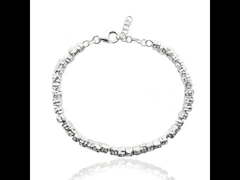 La catena rolò ospita pepiti martellate in argento, per un look ricco di dettagli e riflessioni luminose. La chiusura è robusta a moschettone, affidabile e arricchita da un’estensione a anellini di 3 cm per una vestibilità perfetta.