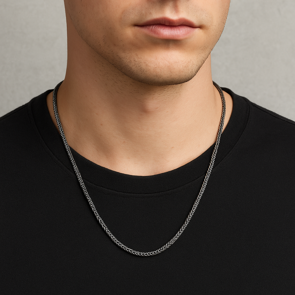 ✅ Materiale: Argento 925 massiccio ✅ Design: Catena a maglia coda di volpe ✅ Spessore: resistente e robusto, ideale per l’uomo moderno ✅ Occasioni: regalo perfetto per uomo, idea per compleanno, anniversario o festa del papà