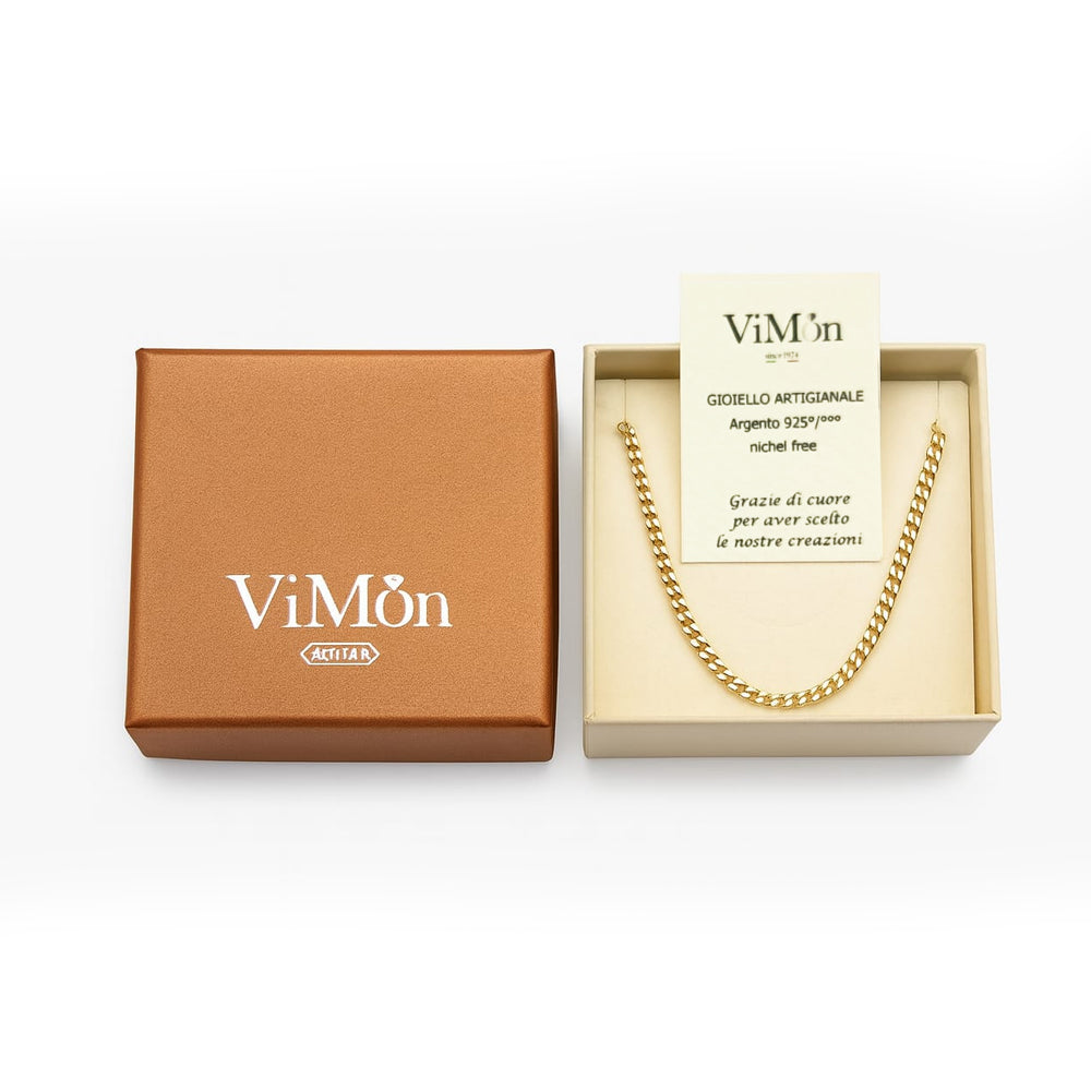 La collana è realizzata in argento 925 certificato e rivestita da una placcatura in oro 18 carati spessa 2 micron, per garantire luminosità e durata.