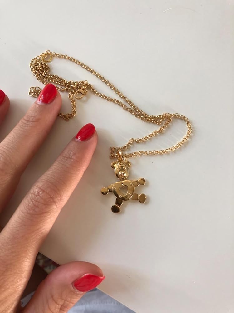 -Il ciondolo raffigura un orsacchiotto totalmente movibile in quanto si muovono: testa, braccia e gambe.