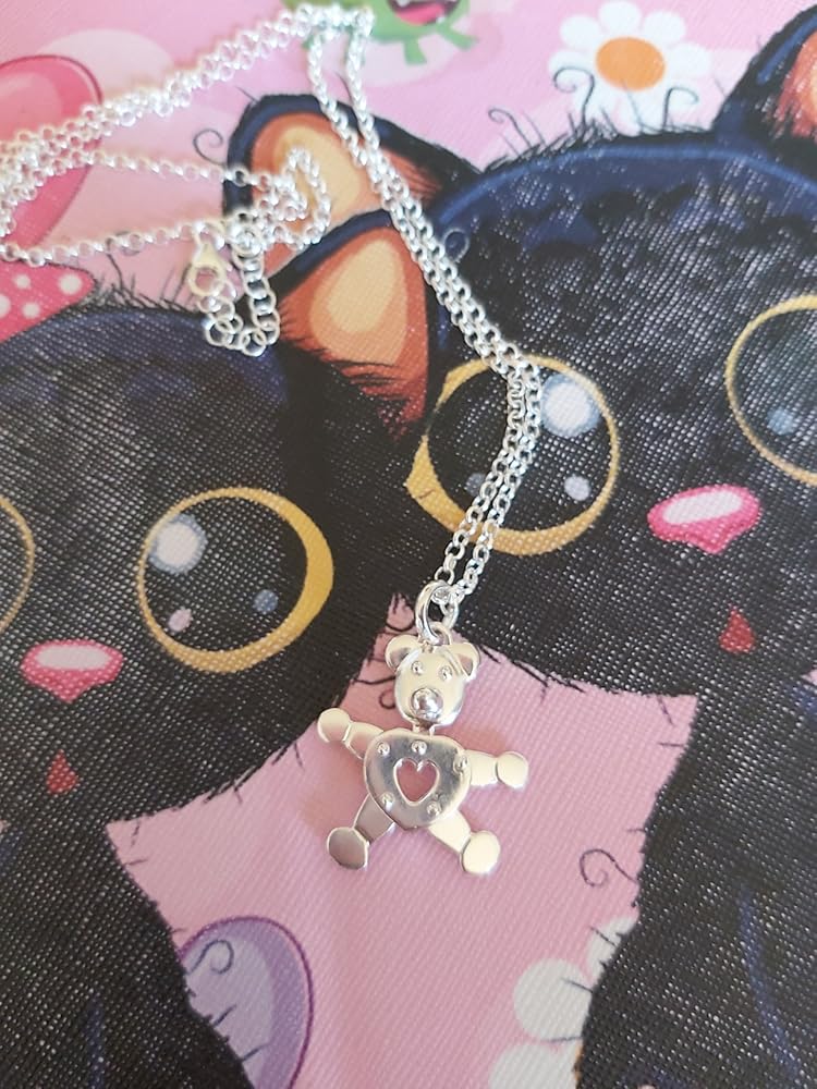 COLLANA in ARGENTO 925,CIONDOLO ORSETTO CUORE movibile.
